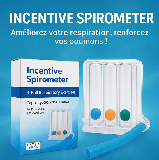 Cet appareil sert à faire travailler les poumons en encourageant des respirations profondes avec le mouvement du diaphragme.